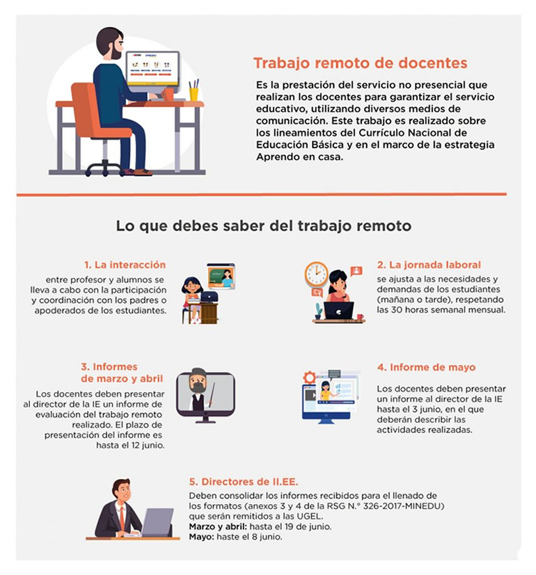 Aprueban el documento normativo denominado “Disposiciones para el trabajo remoto de los profesores que asegure el desarrollo del Servicio Educativo No Presencial de las Instituciones y Programas Educativos Públicos, frente al brote del COVID-19”Oficio Múltiple N.° 042-2020-MINEDU/VMGP-DIGEDD-DITEN